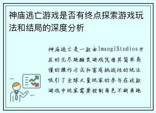 神庙逃亡游戏是否有终点探索游戏玩法和结局的深度分析